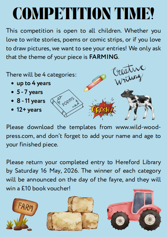 - Entries to be handed in to Hereford Library by Saturday 16 May, 2026.