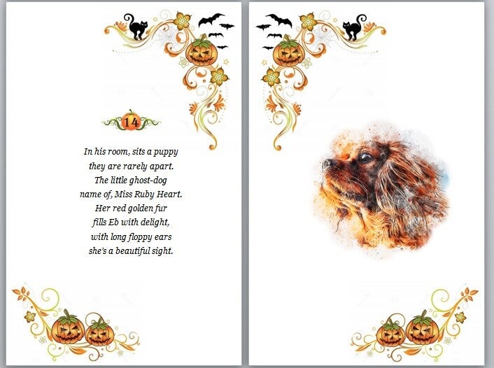 On Christmas Eve Grandfather Time decides he must teach the boy a lesson. So he calls upon his friends; the Ghosts of Past, Present and Future and with lessons to learn he brings forth the first tutor – a little golden-red King Charles spaniel, called Miss Ruby Heart.